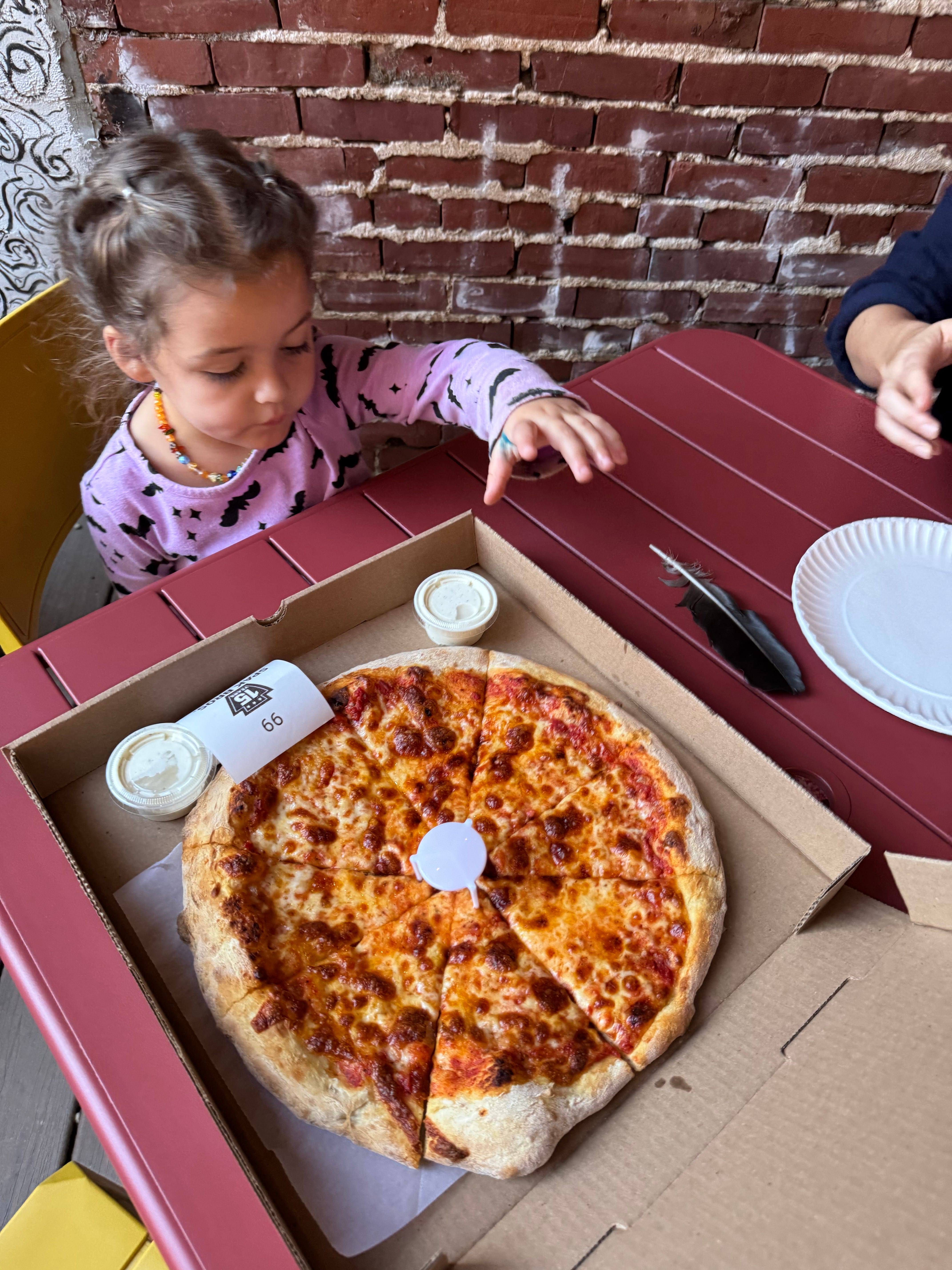 Almost every Friday our family ends up at Spak Bros for pizza, ranch dressing and French fries. Any time we ask Charlie what she wants to eat she suggests Spak Bros. Recently while I was in NYC our car broke down in front of Spak Bros and Christa and Charlie hung out in the shop as they waited for help. The staff was very helpful to them, supplying shelter and water, and even offered Charlie a job working in the kitchen.